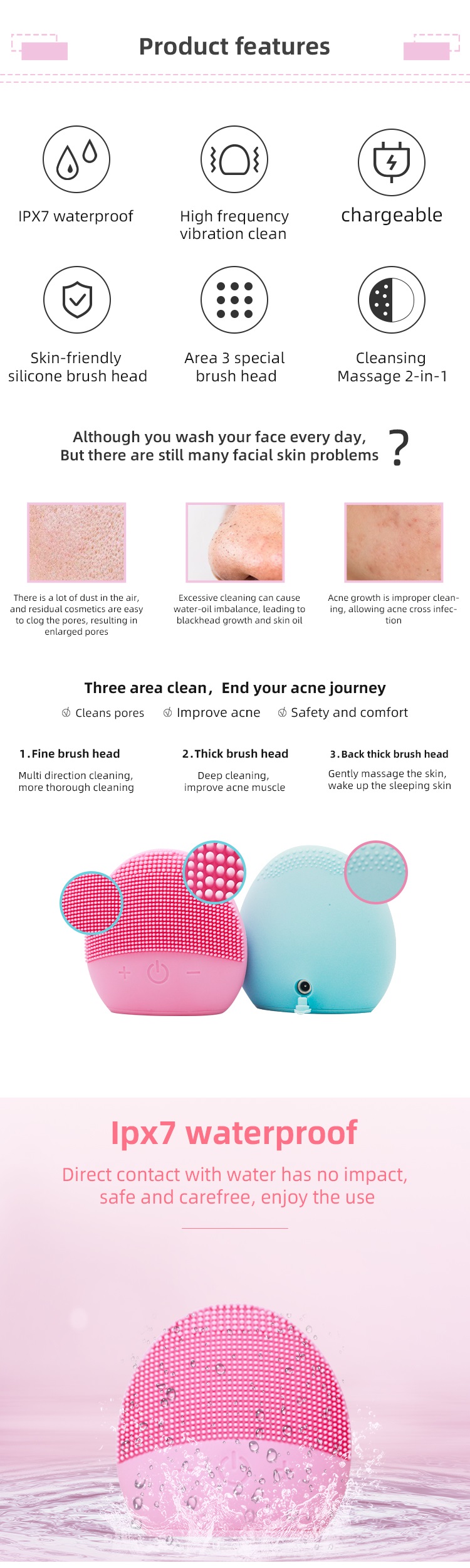 ميزات فرشاة تنظيف الوجه