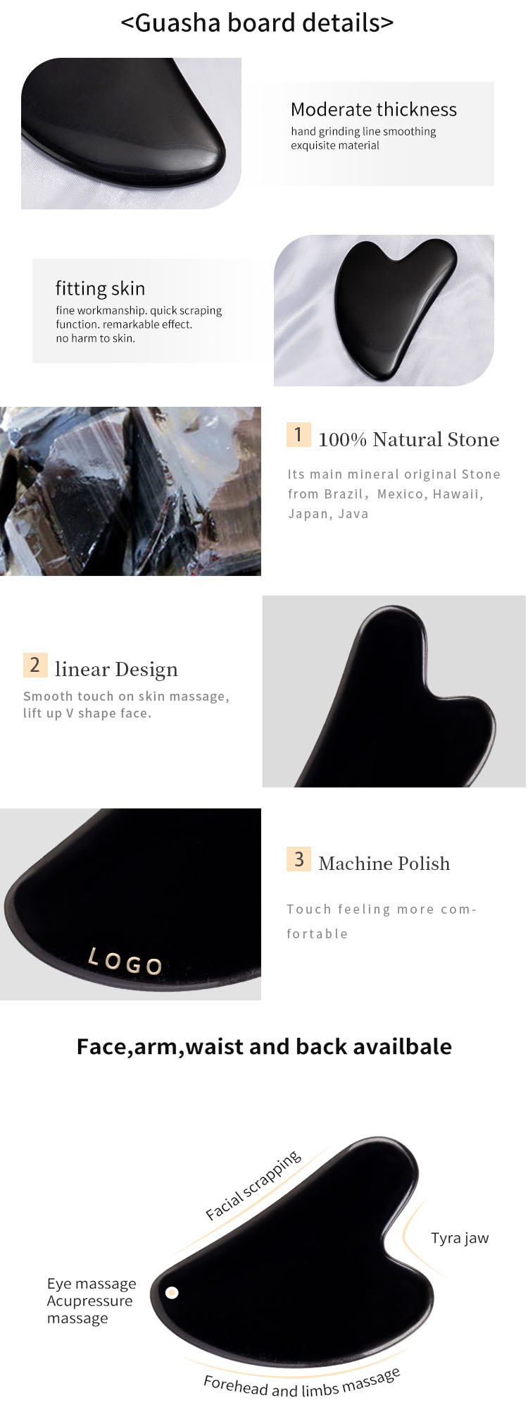 Beliebte natürliche schwarze Jade Obsidian Gua Sha Massage Stein Gesicht Anti Aging Beauty Tools