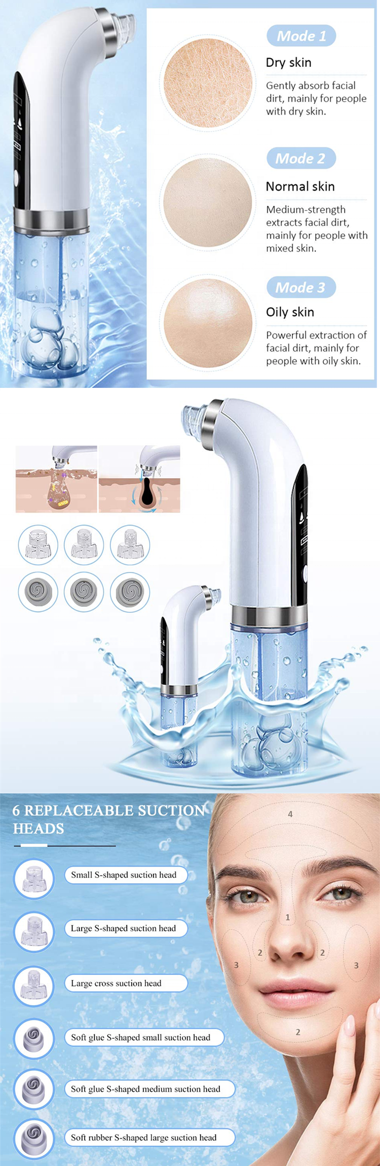7. It is come with 3 suction levels for meet different skin types, and protect your skin from damage, you can adjust it according the blackhead severity and skin types.