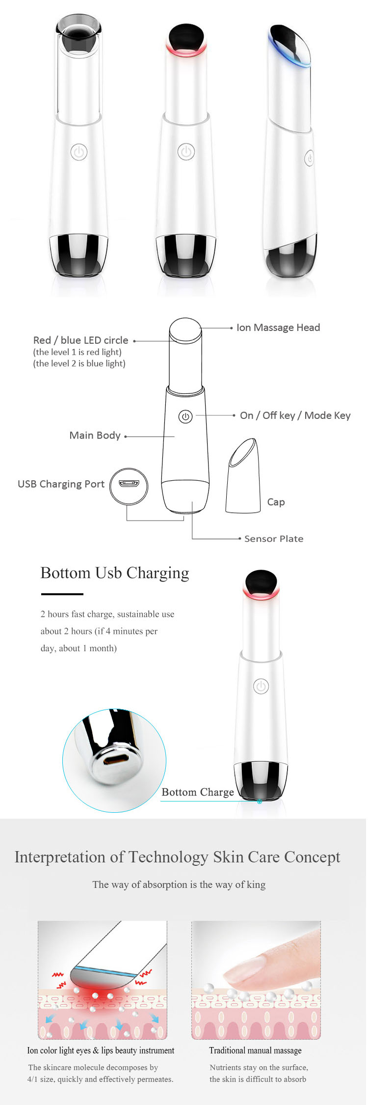 1. Ion Facial Massager - Your Beauty Keeper : All-in-one unit provide heating, ion function,matching the skin care cosmetics products, can improve the skin care effectively, make skin more elastic and stay youthful luster.
