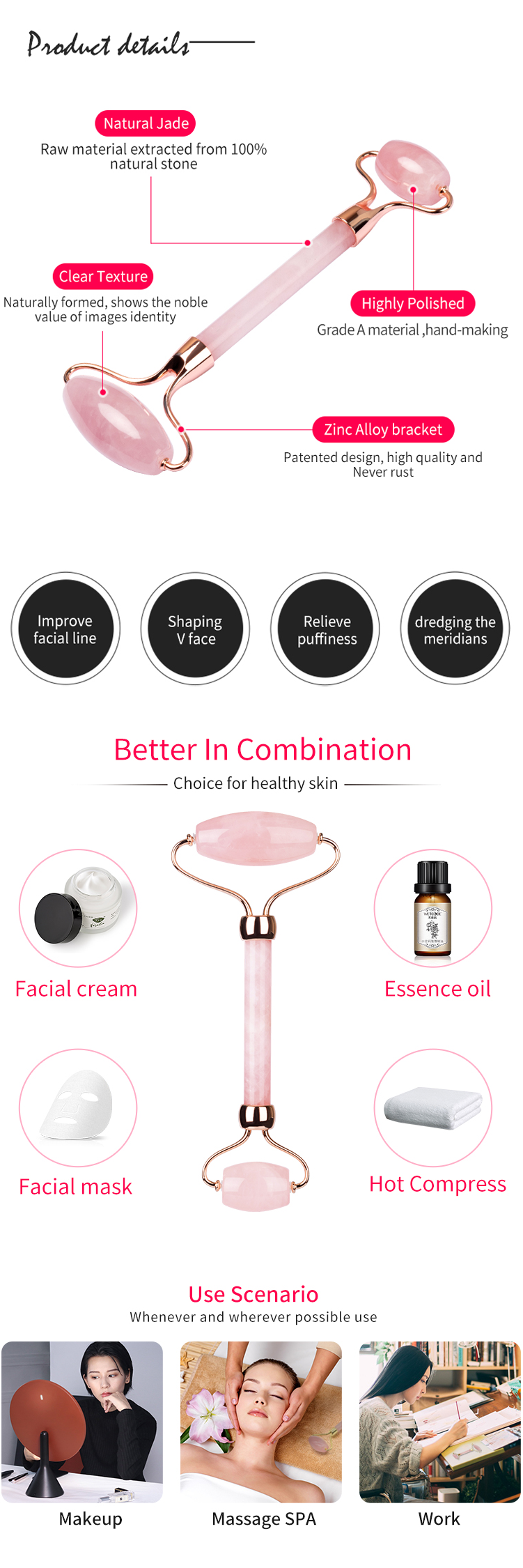 Rodillo facial natural del jade del masaje del rodillo del cuarzo de Rose de la patente de la etiqueta privada para la cara