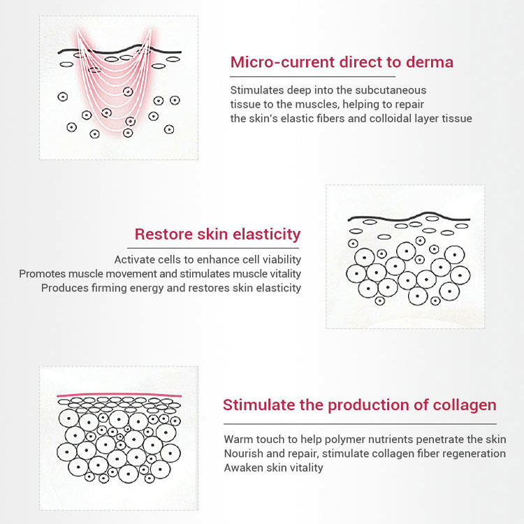 2. Accélérez la circulation sanguine des minuscules vaisseaux sanguins, de sorte que les ingrédients de soin de la peau puissent être efficacement fournis au tissu musculaire et au derme.
