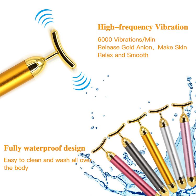 Dispositivo di massaggio elettrico di vibrazione di massaggio del bastone dell'oro dello strumento del viso di bellezza dell'oro V