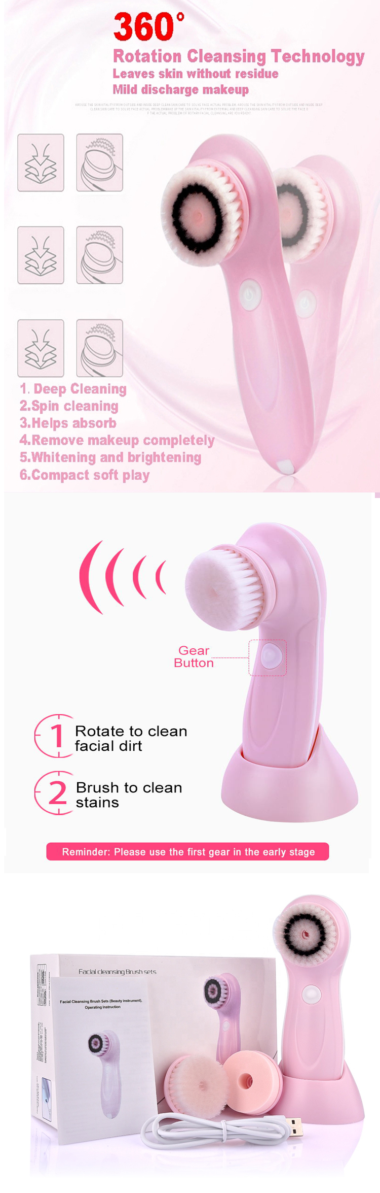 ラグジュアリー3イン1スピン防水回転フェイスブラシマッサージャー充電式フェイシャルブラシクレンザー