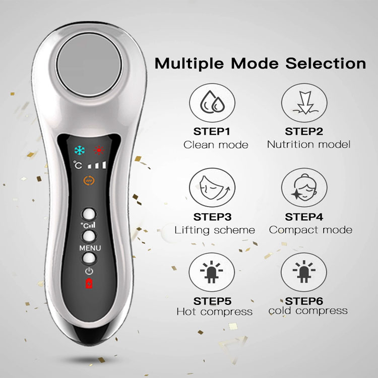 1. Горячий и холодный массажер для лица: можно свободно переключаться между горячим (100,4 -114,8) и холодным (44,6 ℉ -50 ℉), массировать кожу вибрацией. Решите различные проблемы с кожей и наслаждайтесь СПА.